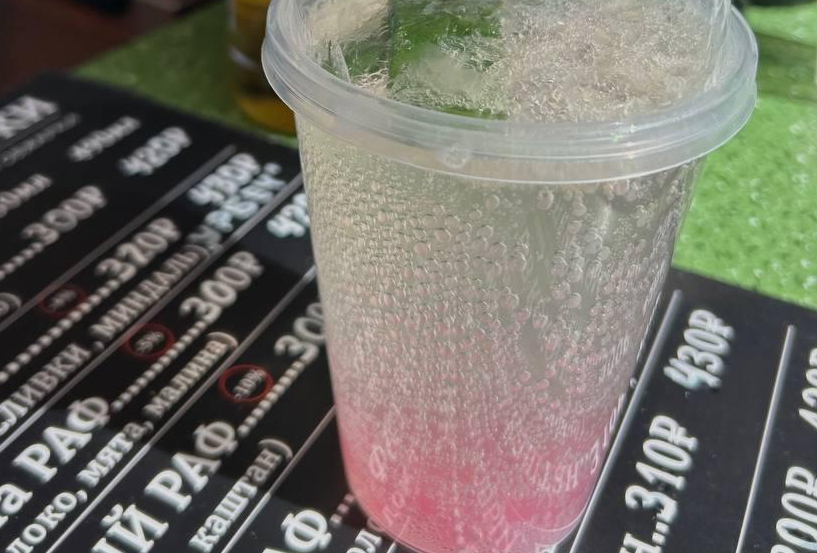 Состав: свежевыжатый лимон, лед, газированная вода